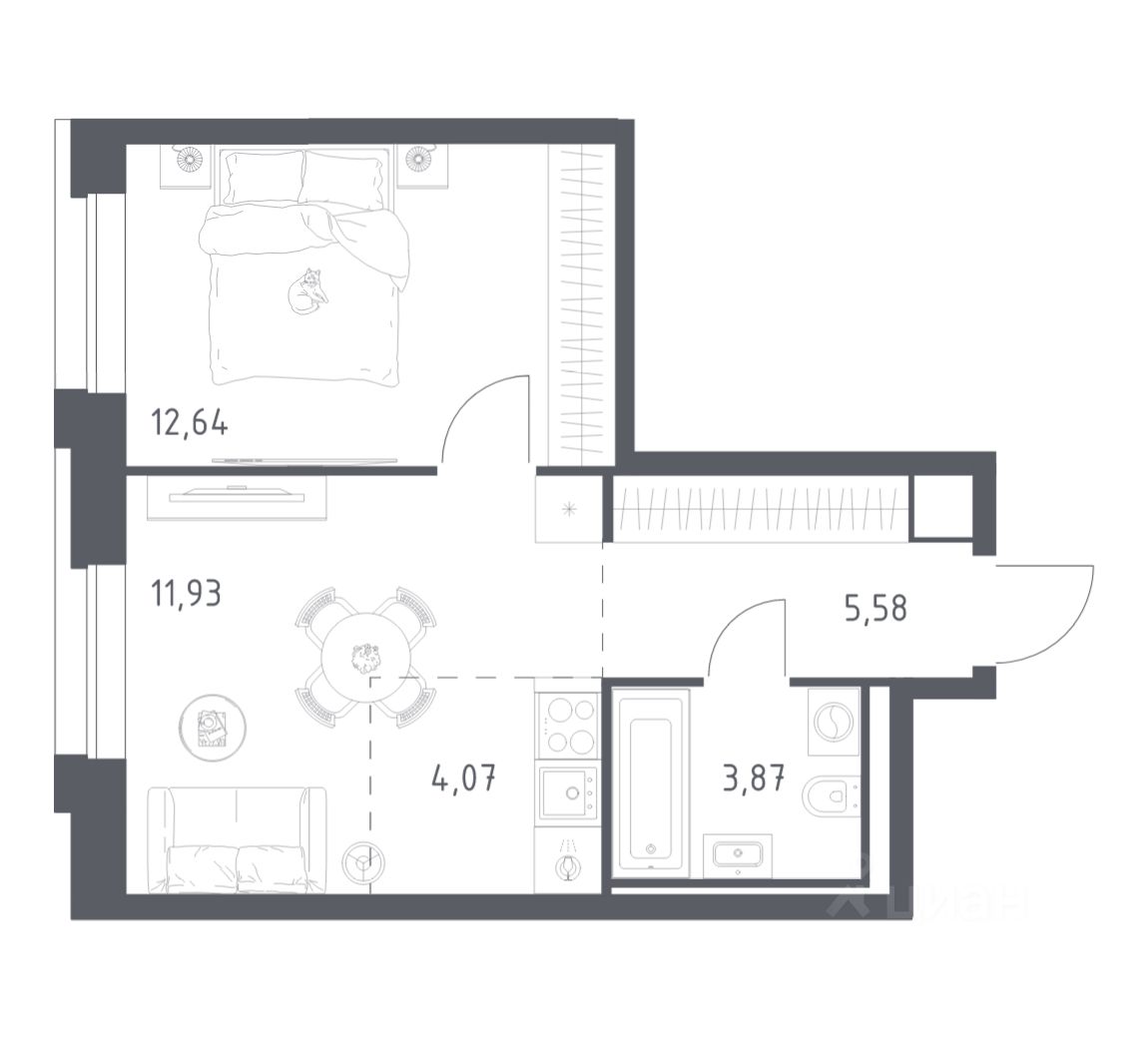 Строим кварталы для жизни с заботой о будущем. Предлагаются 1-комнатные апартаменты бизнес-класса площадью 38,09 кв.м в корпусе 1 на 8-м этаже, в жилом комплексе "Верейская 41".