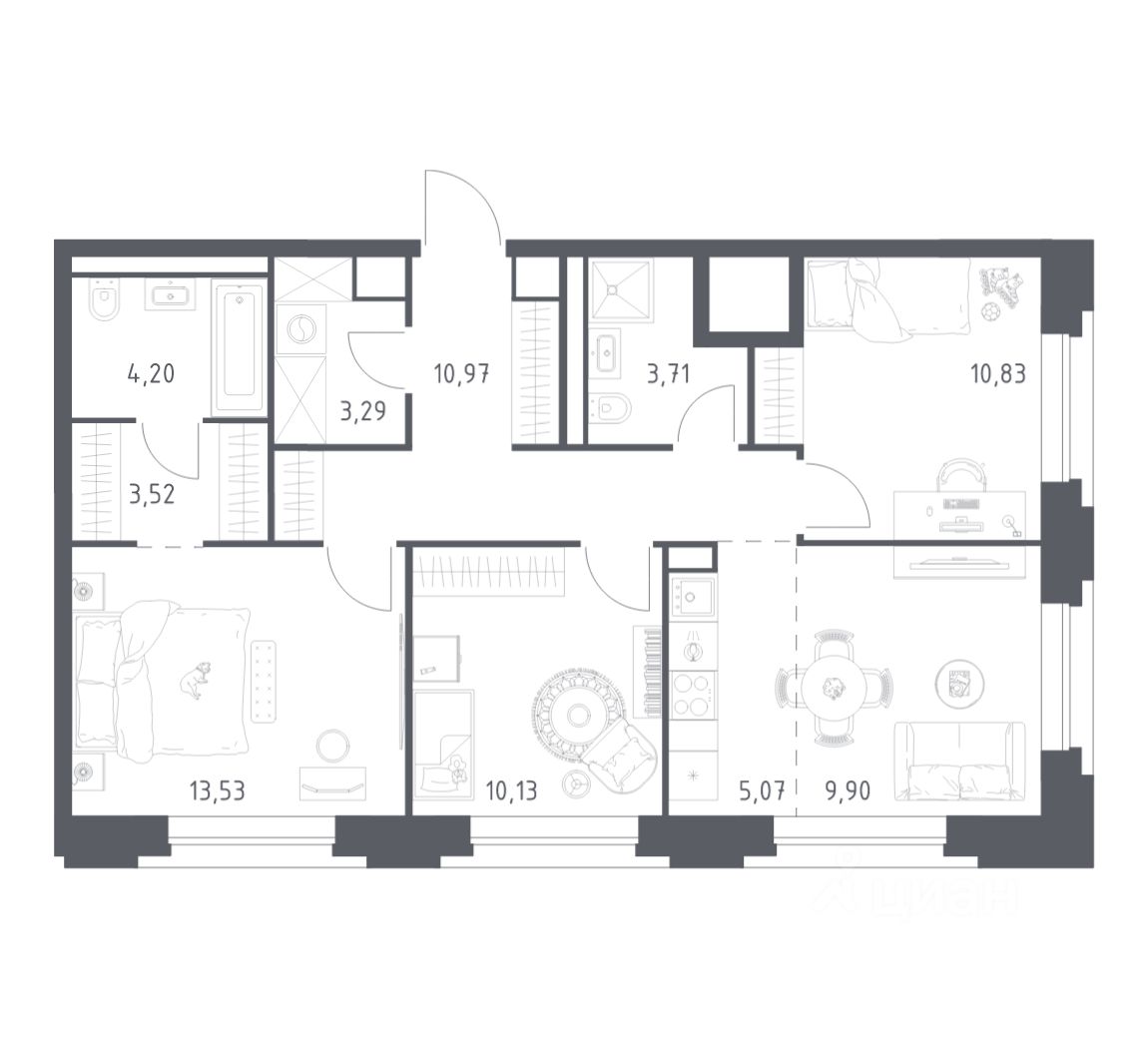 Вы можете сразу заказать мебель, технику, декор и текстиль. Уникальный интерьер подчеркнет ваш вкус. Для тех, кто хочет самостоятельно обустроить пространство с нуля, возможна сдача помещения без отделки.