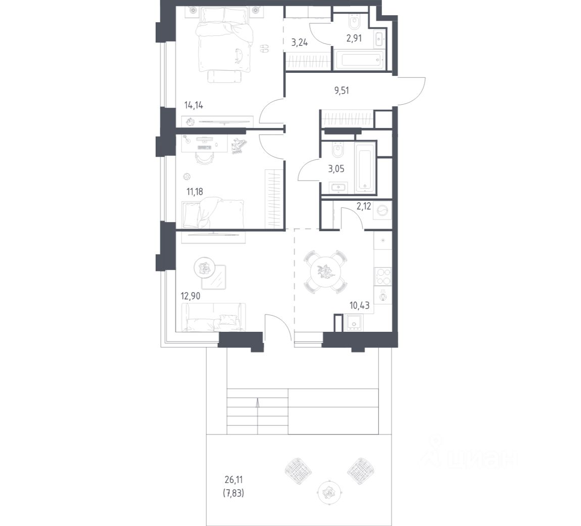Вы можете сразу заказать мебель, технику, декор и текстиль. Уникальный интерьер подчеркнет ваш вкус. Для тех, кто хочет самостоятельно обустроить пространство с нуля, возможна сдача помещения без отделки.