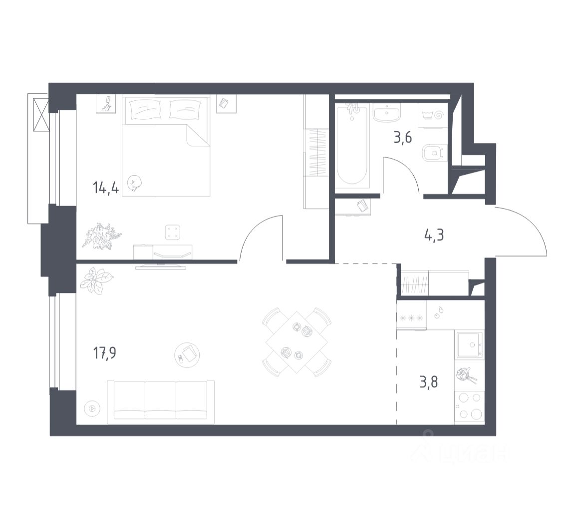 Строим кварталы для жизни с заботой о будущем. Предлагаются 1-комнатные апартаменты бизнес-класса площадью 43,91 кв.м в корпусе 3.1 на 5-м этаже, в жилом комплексе "Верейская 41".