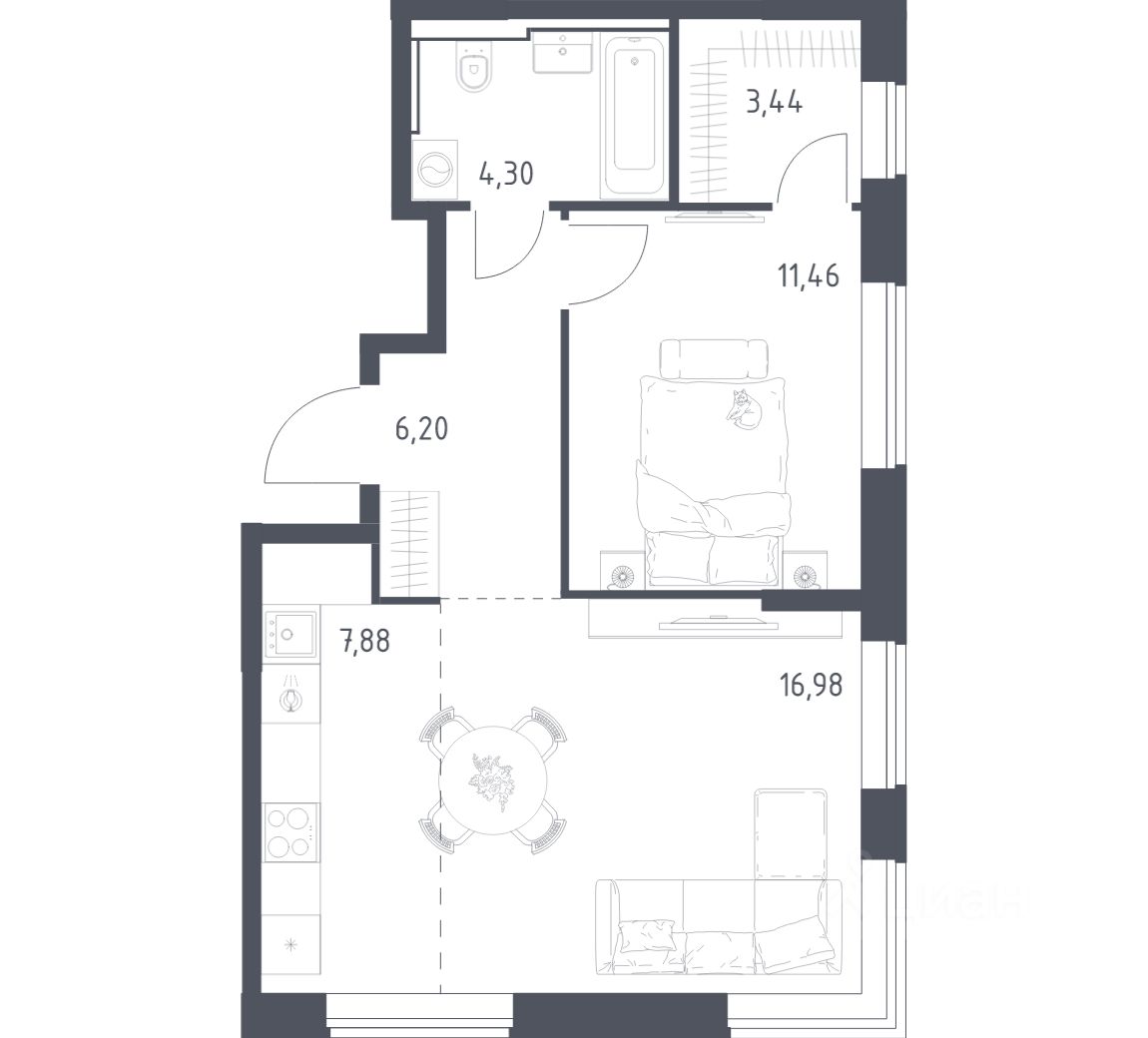 Строим кварталы для жизни с заботой о будущем. Предлагается 1-комнатная квартира комфорт-класса площадью 50,26 кв.м в корпусе 2 на 4-м этаже, в жилом комплексе "Квартал Домашний".