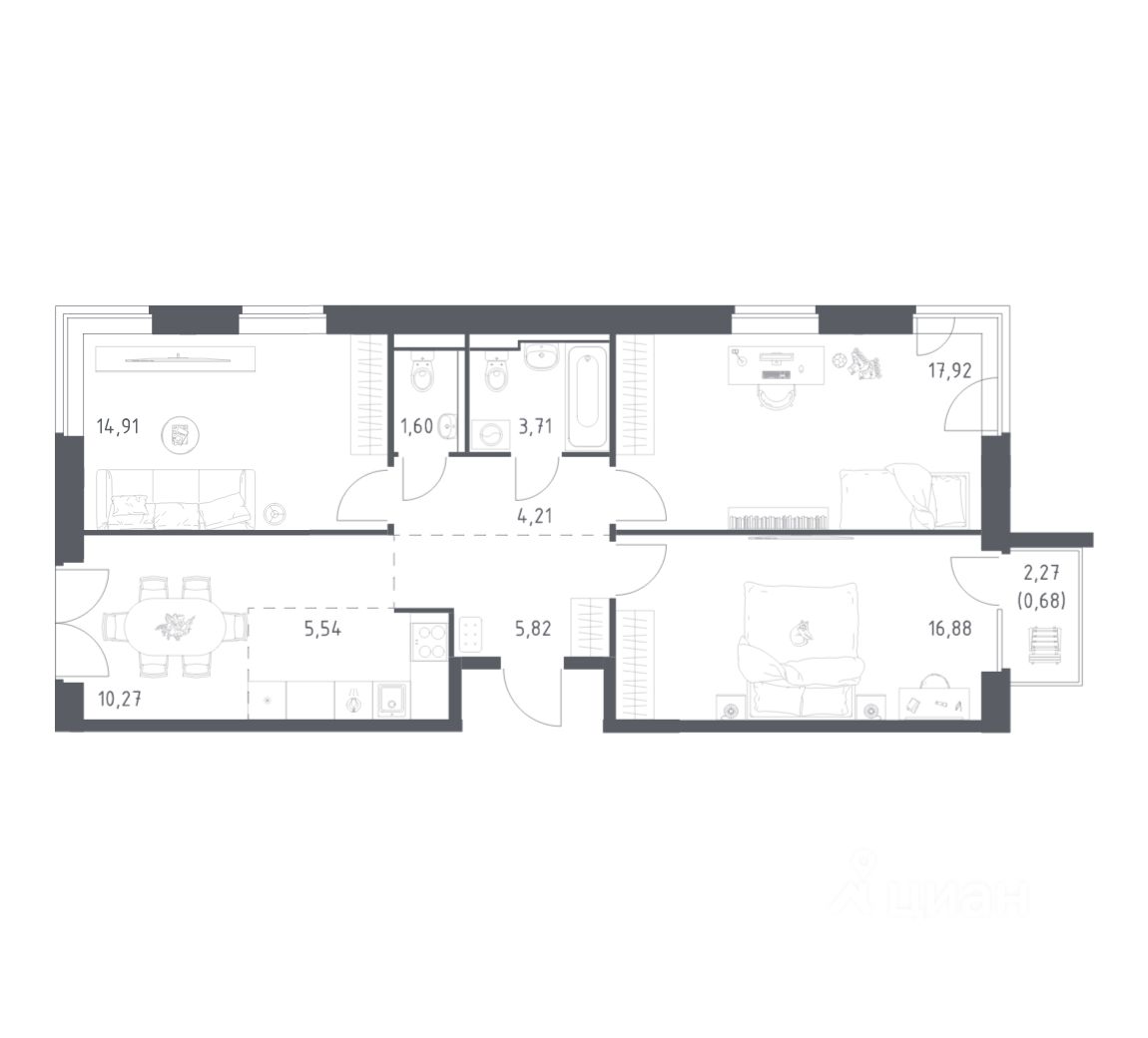 Строим кварталы для жизни с заботой о будущем. Предлагается 3-комнатная квартира комфорт-класса площадью 81,54 кв.м в корпусе 9 на 6-м этаже, в жилом комплексе "Квартал Западный".