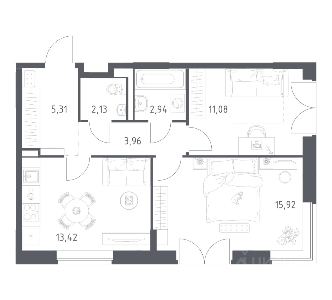 Строим кварталы для жизни с заботой о будущем. Предлагается 2-комнатная квартира комфорт-класса площадью 54,76 кв.м в корпусе 9 на 12-м этаже, в жилом комплексе "Квартал Западный".