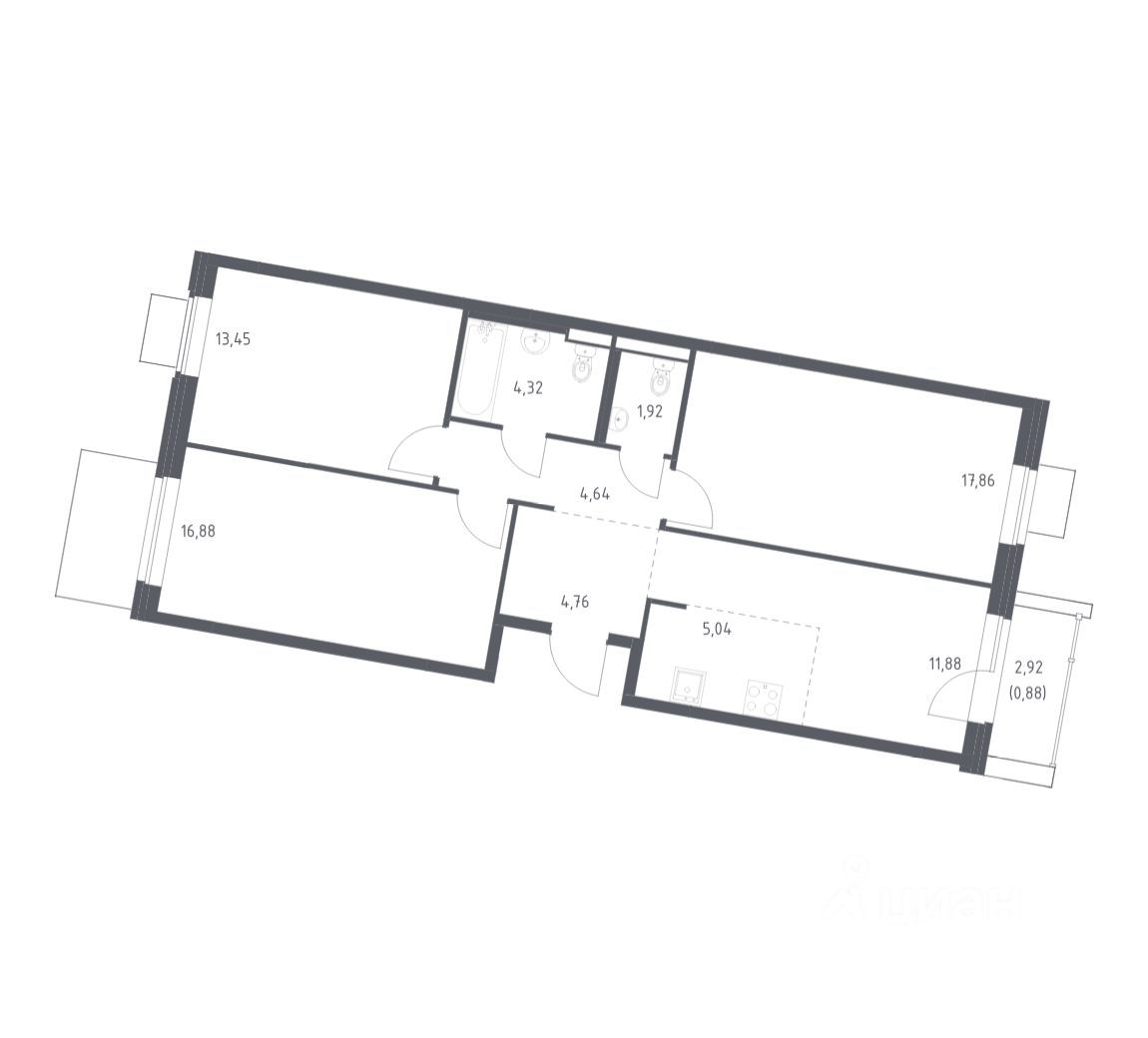 Строим кварталы для жизни с заботой о будущем. Предлагается 3-комнатная квартира комфорт-класса площадью 81,63 кв.м в корпусе 6 на 7-м этаже, в жилом комплексе "Квартал Западный".
