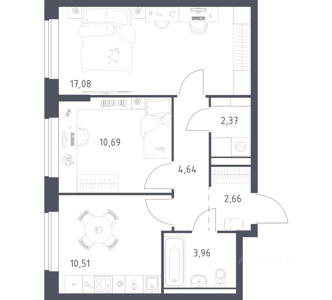 Строим кварталы для жизни с заботой о будущем. Предлагается 2-комнатная квартира комфорт-класса площадью 51,91 кв.м в корпусе 3.2 на 3-м этаже, в жилом комплексе "Егорово Парк".