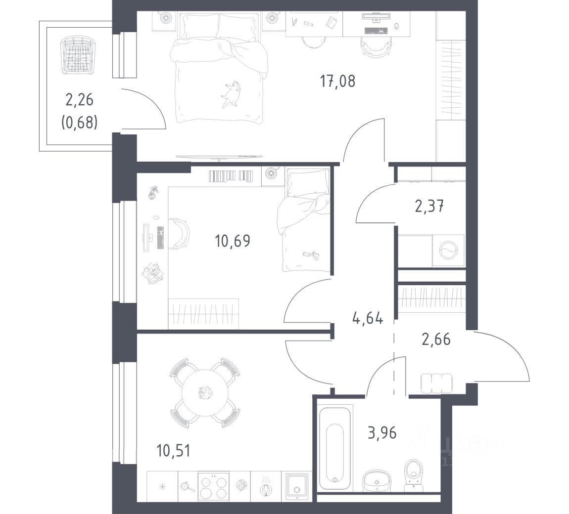 Строим кварталы для жизни с заботой о будущем. Предлагается 2-комнатная квартира комфорт-класса площадью 52,59 кв.м в корпусе 3.2 на 7-м этаже, в жилом комплексе "Егорово Парк".