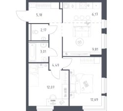 Строим кварталы для жизни с заботой о будущем. Предлагается 2-комнатная квартира комфорт-класса площадью 55,59 кв.м в корпусе 3.2 на 3-м этаже, в жилом комплексе "Егорово Парк".