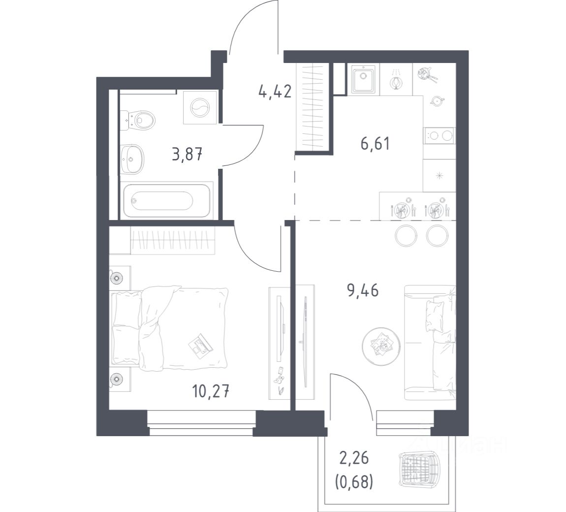 Строим кварталы для жизни с заботой о будущем. Предлагается 1-комнатная квартира комфорт-класса площадью 35,31 кв.м в корпусе 3.2 на 8-м этаже, в жилом комплексе "Егорово Парк".
