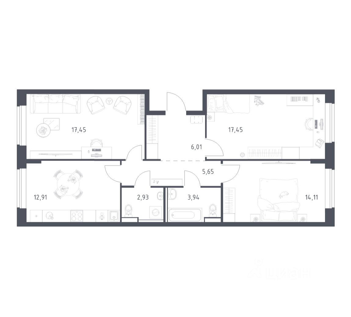 Квартиры комплекса — на выбор: могут быть как с отделкой, так и без. В случае с готовой отделкой в комнатах и прихожей уже будут обои, натяжные потолки и ламинат, а в санузлах — керамогранит на полу и керамическая плитка на стенах. Мы подведем все коммуникации и установим сантехнику.
