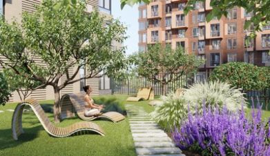 Квартиры комплекса — на выбор: могут быть как с отделкой, так и без. В случае с готовой отделкой в комнатах и прихожей уже будут обои, натяжные потолки и ламинат, а в санузлах — керамогранит на полу и керамическая плитка на стенах. Мы подведем все коммуникации и установим сантехнику.