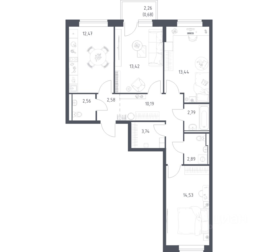 Строим кварталы для жизни с заботой о будущем. Предлагается 3-комнатная квартира комфорт-класса площадью 79,29 кв.м в корпусе 3.1 на 3-м этаже, в жилом комплексе "Егорово Парк".