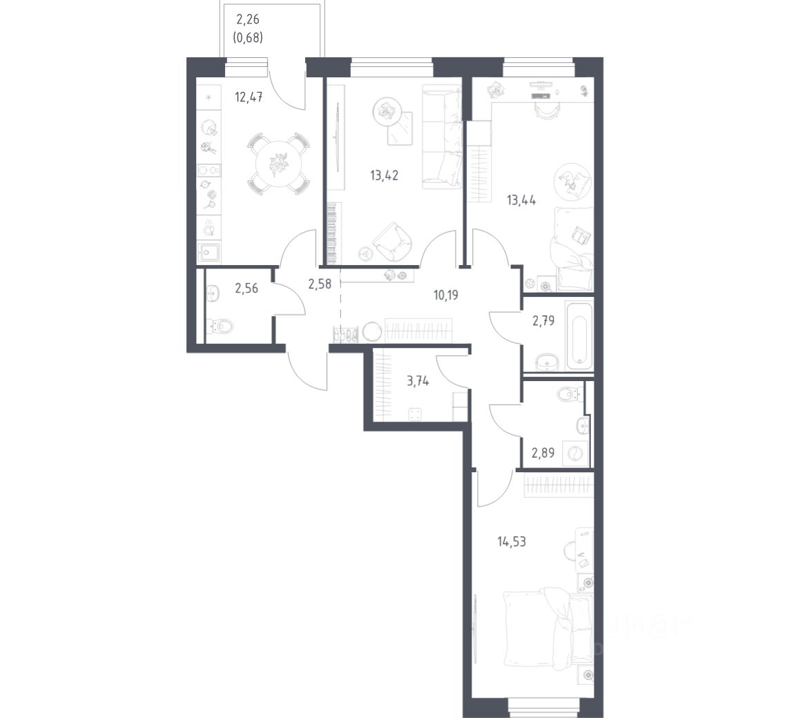 Строим кварталы для жизни с заботой о будущем. Предлагается 3-комнатная квартира комфорт-класса площадью 79,29 кв.м в корпусе 3.1 на 5-м этаже, в жилом комплексе "Егорово Парк".