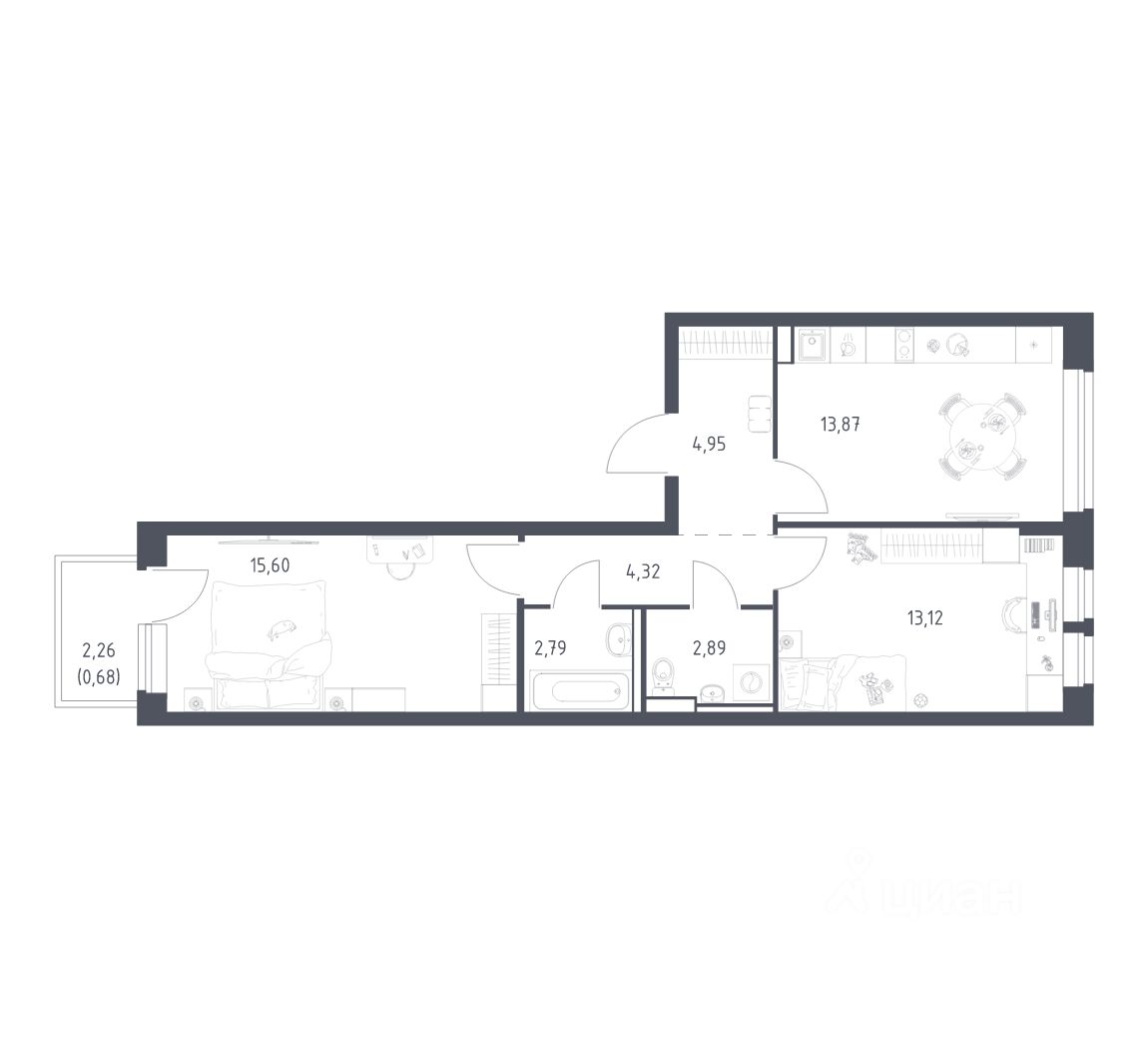 Строим кварталы для жизни с заботой о будущем. Предлагается 2-комнатная квартира комфорт-класса площадью 58,22 кв.м в корпусе 3.1 на 8-м этаже, в жилом комплексе "Егорово Парк".