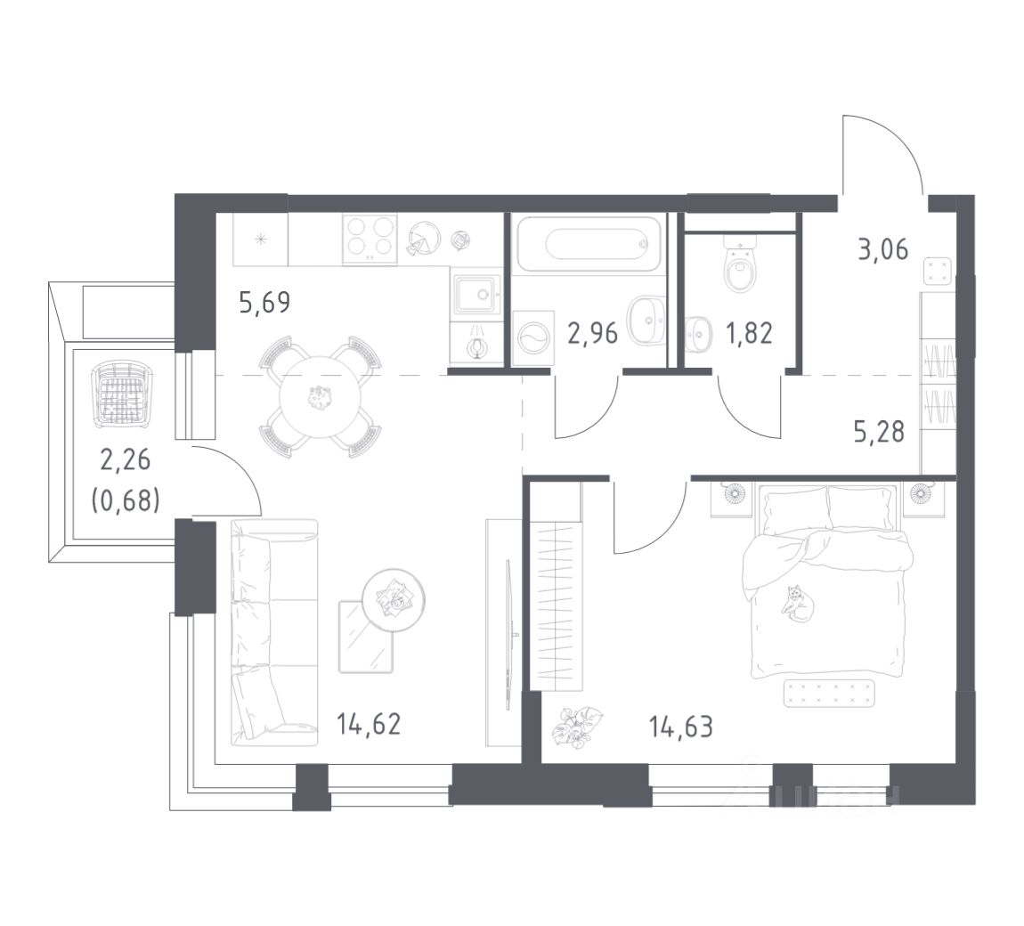 Строим кварталы для жизни с заботой о будущем. Предлагается 1-комнатная квартира комфорт-класса площадью 48,74 кв.м в корпусе 3.3 на 5-м этаже, в жилом комплексе "Егорово Парк".