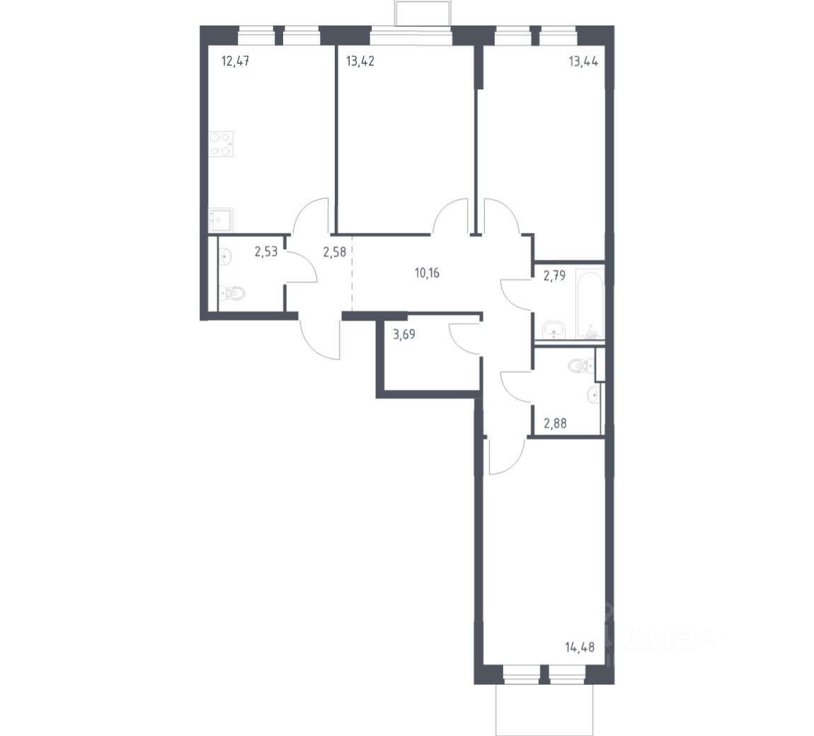 Строим кварталы для жизни с заботой о будущем. Предлагается 3-комнатная квартира комфорт-класса площадью 78,44 кв.м в корпусе 5 на 11-м этаже, в жилом комплексе "Молжаниново".