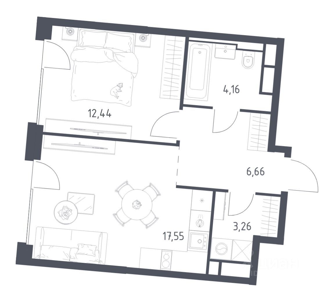 Строим кварталы для жизни с заботой о будущем. Предлагается 1-комнатная квартира бизнес-класса площадью 44,07 кв.м в корпусе 5 на 2-м этаже, в жилом комплексе "Квартал на воде".