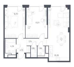 В квартире с чистовой отделкой можно сразу заняться обустройством, а не тратить силы на ремонт. В комнатах — ламинат с текстурой натурального дерева и светлые обои. В санузлах — керамогранит и керамическая плитка в природных тонах. Также будут установлены белые матовые натяжные потолки, точечные светильники и сантехника.