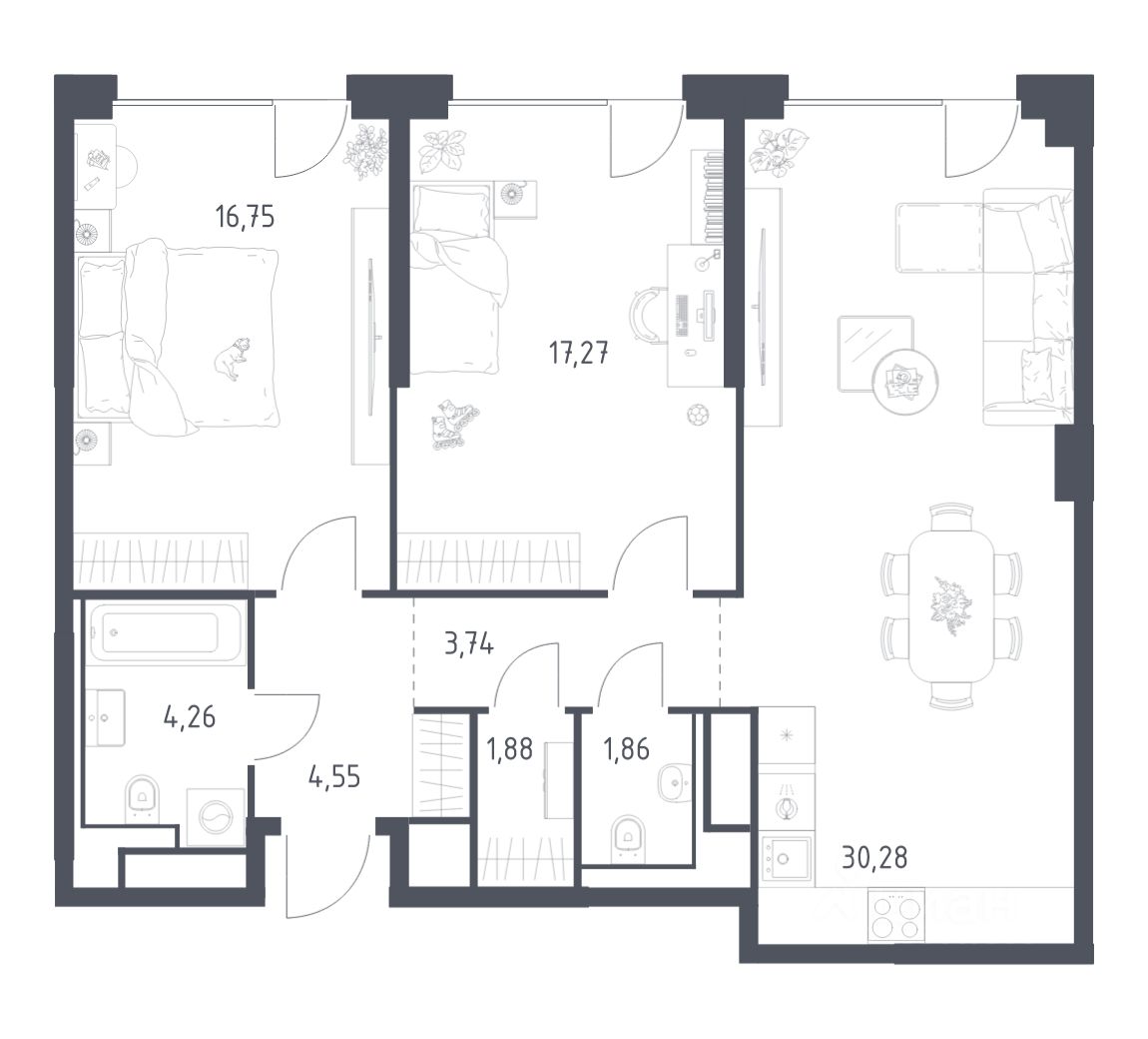 Цена динамическая и может отличаться, уточняйте актуальность у застройщика.