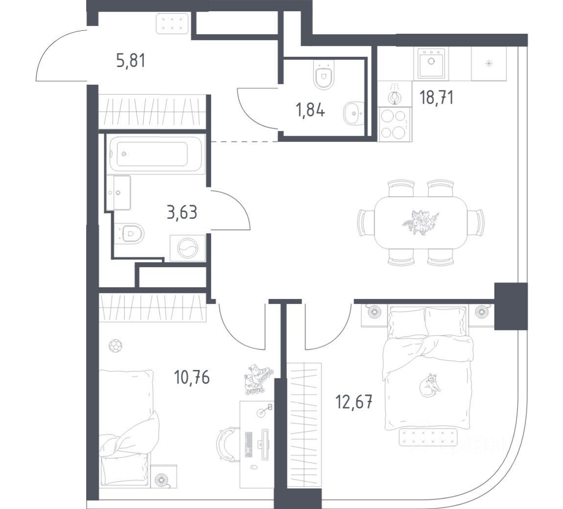 Строим кварталы для жизни с заботой о будущем. Предлагается 2-комнатная квартира бизнес-класса площадью 53,42 кв.м в корпусе 5 на 8-м этаже, в жилом комплексе "Квартал на воде".