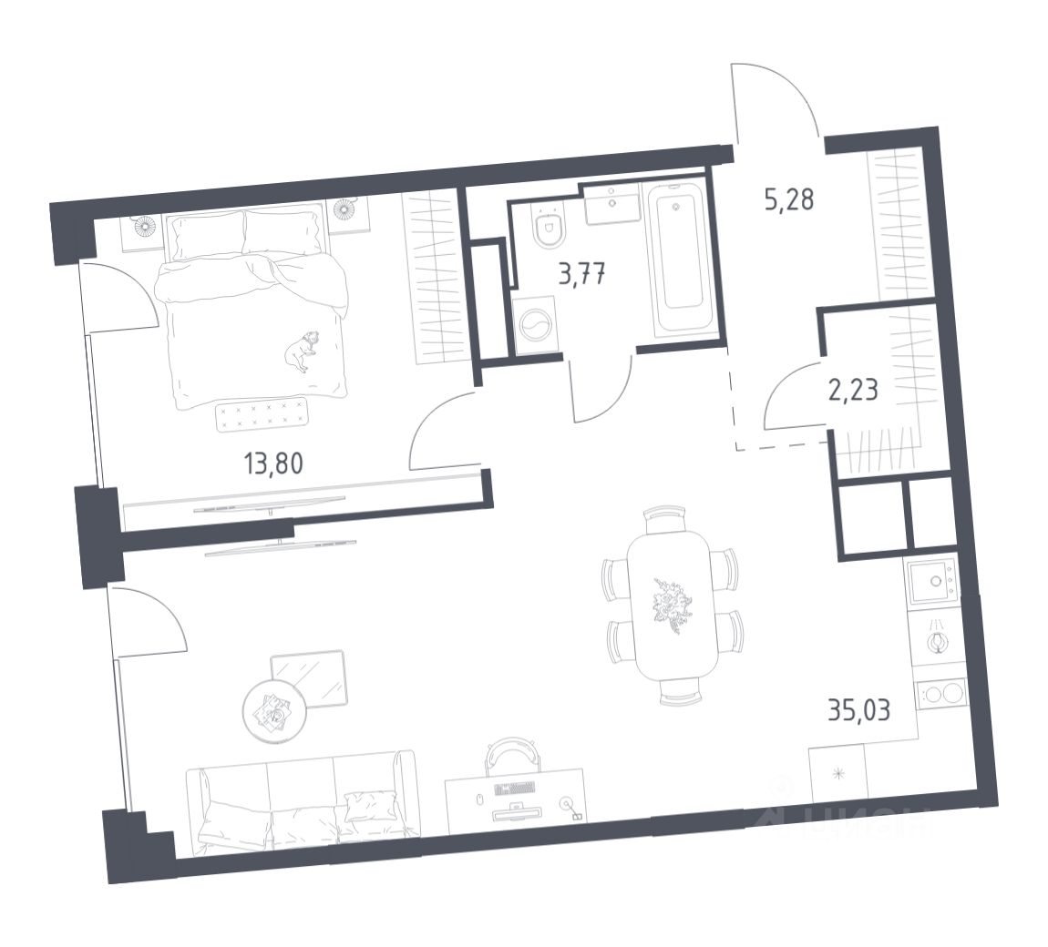 Строим кварталы для жизни с заботой о будущем. Предлагается 1-комнатная квартира бизнес-класса площадью 60,11 кв.м в корпусе 5 на 4-м этаже, в жилом комплексе "Квартал на воде".