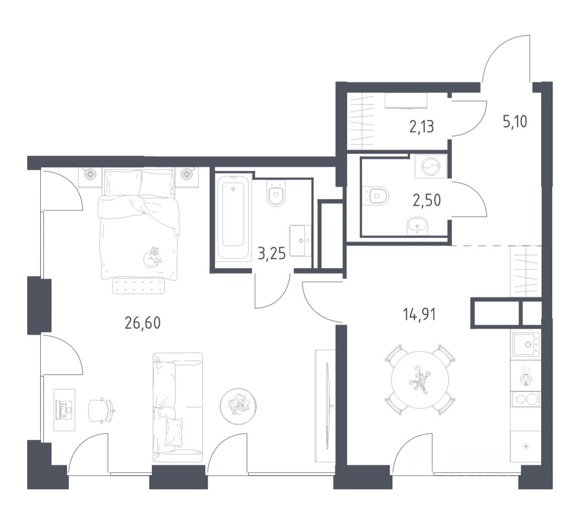 Строим кварталы для жизни с заботой о будущем. Предлагается 1-комнатная квартира бизнес-класса площадью 54,49 кв.м в корпусе 5 на 2-м этаже, в жилом комплексе "Квартал на воде".