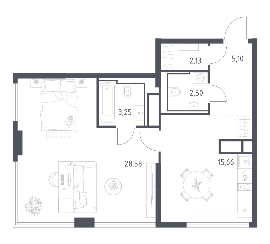 Строим кварталы для жизни с заботой о будущем. Предлагается 1-комнатная квартира бизнес-класса площадью 57,22 кв.м в корпусе 5 на 20-м этаже, в жилом комплексе "Квартал на воде".