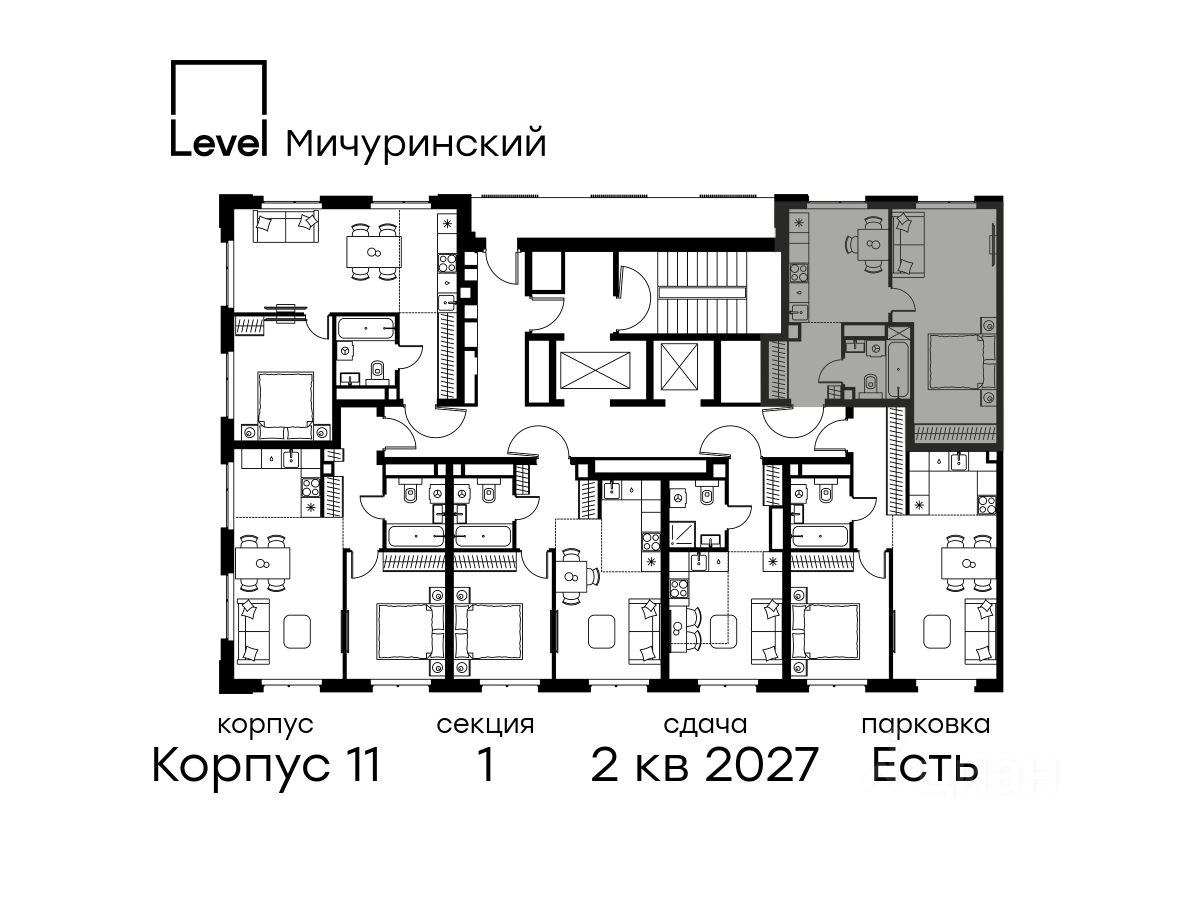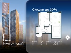 В жилом квартале, расположенном на границе с природным заказником "Долина реки Очаковки", продаётся 1-комнатная квартира площадью 39.10 кв.м с отделкой white box. Квартира расположена на 19 этаже 24-этажного корпуса 11 в жилом комплексе бизнес-класса Level Мичуринский (компания Level Group/Левел групп).