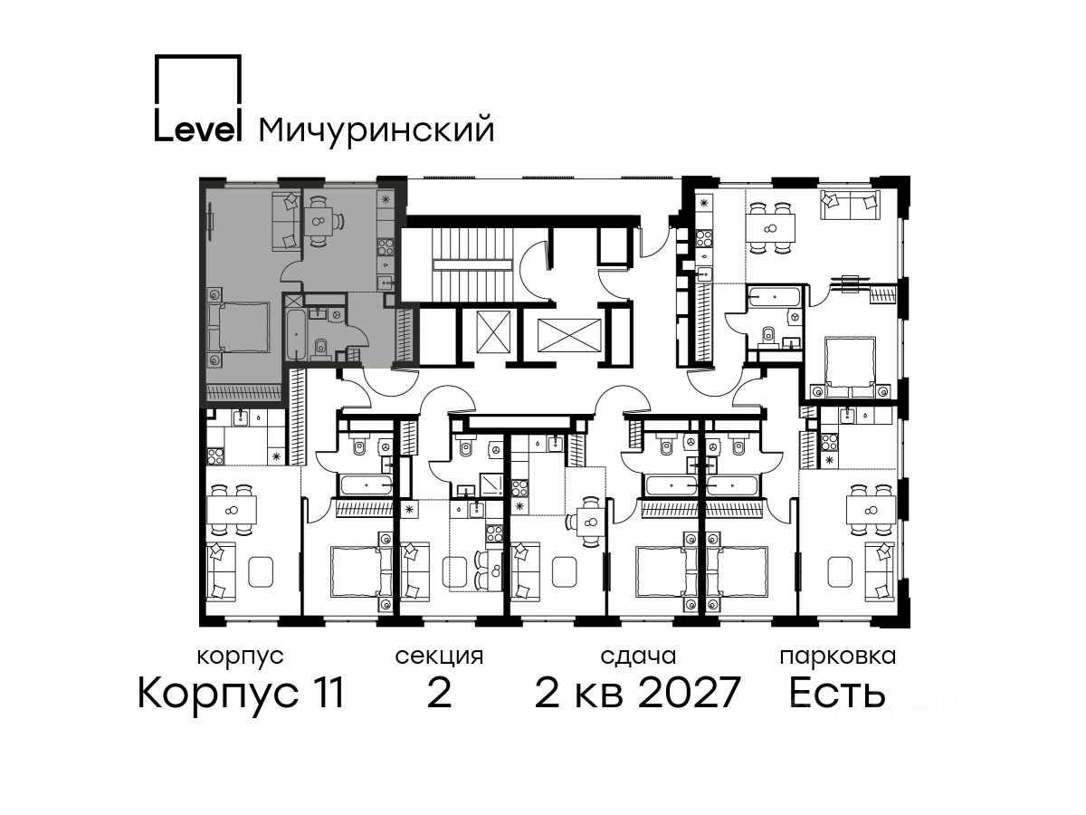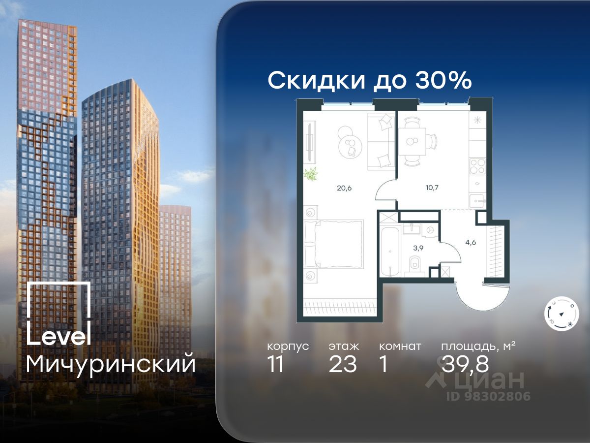 В жилом квартале, расположенном на границе с природным заказником "Долина реки Очаковки", продаётся 1-комнатная квартира площадью 39.80 кв.м без отделки. Квартира расположена на 23 этаже 24-этажного корпуса 11 в жилом комплексе бизнес-класса Level Мичуринский (компания Level Group/Левел групп).