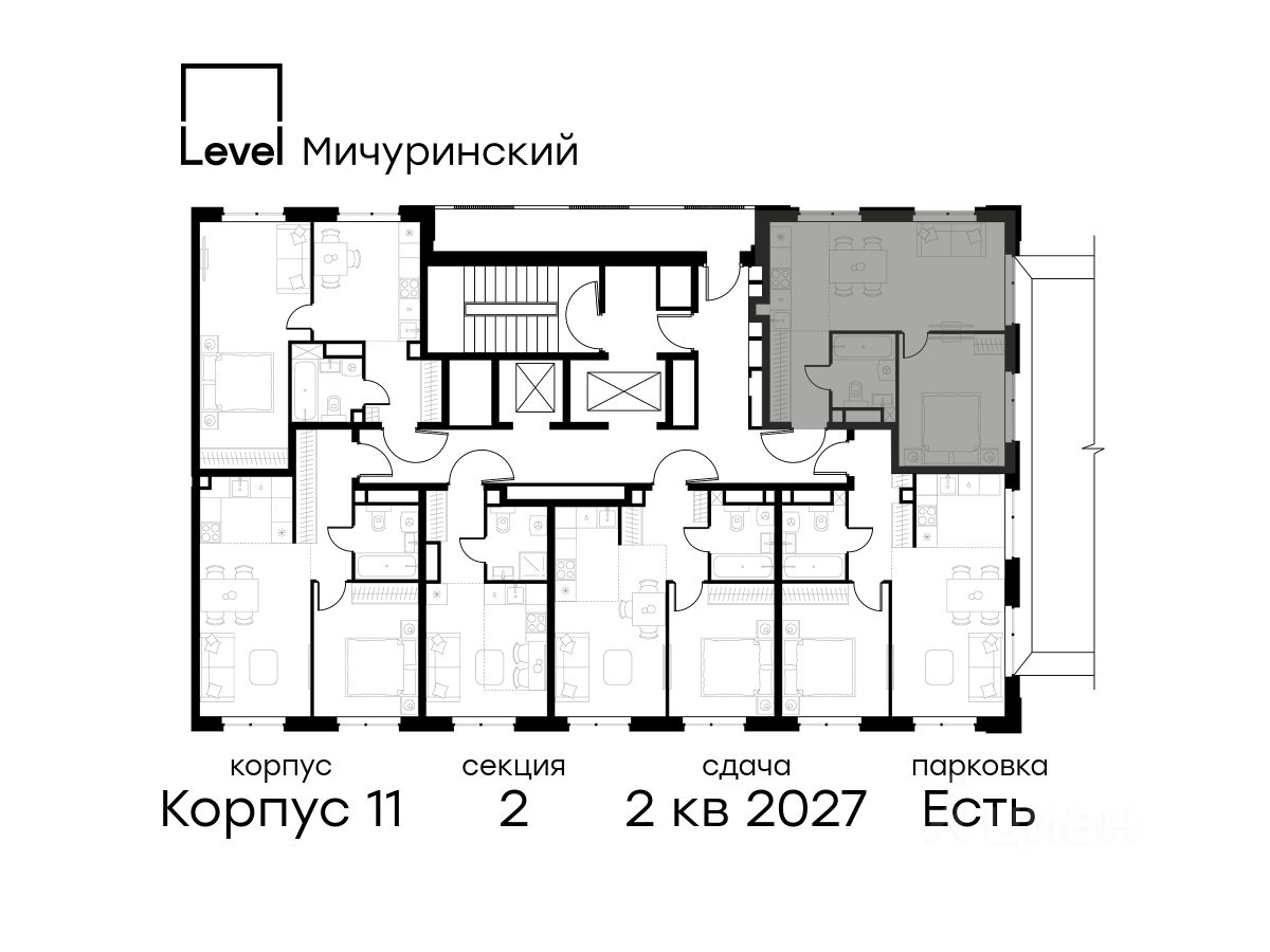 В жилом квартале, расположенном на границе с природным заказником "Долина реки Очаковки", продаётся 2-комнатная квартира площадью 41.70 кв.м без отделки. Квартира расположена на 12 этаже 24-этажного корпуса 11 в жилом комплексе бизнес-класса Level Мичуринский (компания Level Group/Левел групп).