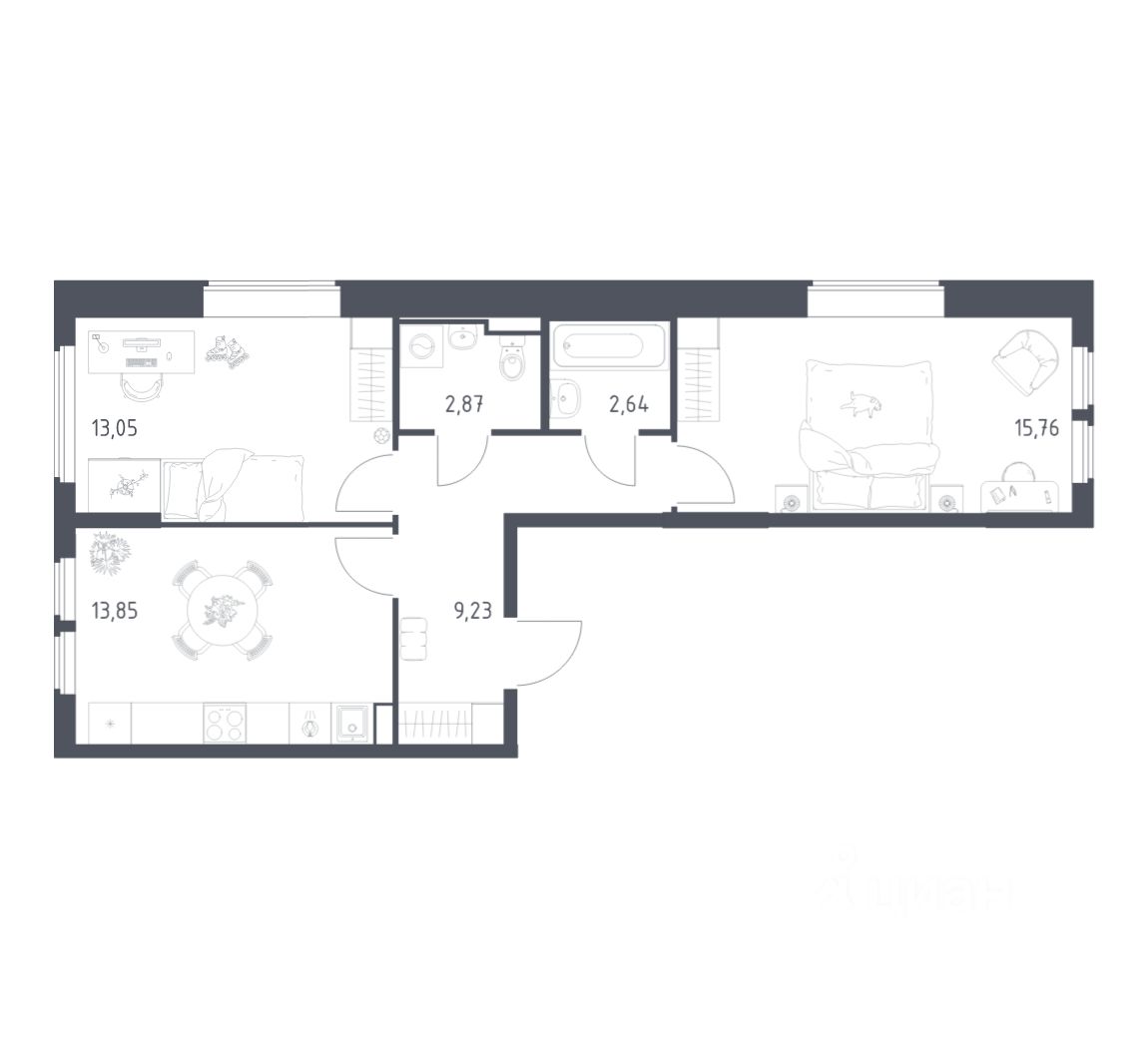 А если не хочется тратить время на ремонт, можно выбрать опцию — с отделкой. Перед тем как отдать ключи, застройщик установит натяжные потолки, поклеит обои под покраску, положит ламинат светлых тонов, а в санузлах — керамическую плитку и керамогранит.