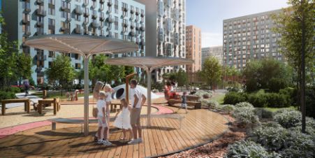 Дворы — приватные мини-парки без машин и посторонних. Кроме игровых площадок, для детей обустроили тематический плейхаб "Маяк". В будущем появятся плейхаб "Алиса в стране чудес", арт-объект "Тропа зеркал", а также большой ландшафтный парк.