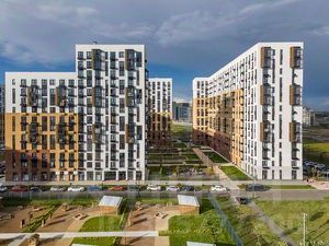 В квартале — монолитные дома комфортной высоты, от 10 этажей. Светлые фасады украшают кирпичные вставки в теплых природных оттенках.