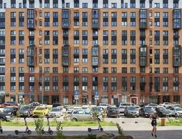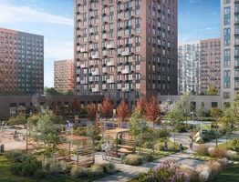 В квартале — монолитные дома комфортной высоты, от 10 этажей. Светлые фасады украшают кирпичные вставки в теплых природных оттенках.