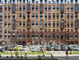 В квартале — монолитные дома комфортной высоты, от 10 этажей. Светлые фасады украшают кирпичные вставки в теплых природных оттенках.