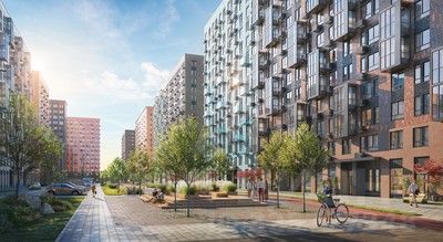 В квартале — монолитные дома комфортной высоты, от 10 этажей. Светлые фасады украшают кирпичные вставки в теплых природных оттенках.