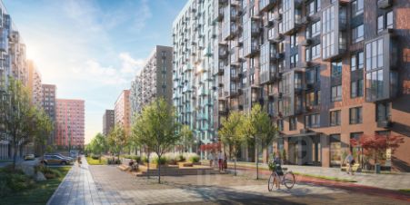 В квартале — монолитные дома комфортной высоты, от 10 этажей. Светлые фасады украшают кирпичные вставки в теплых природных оттенках.