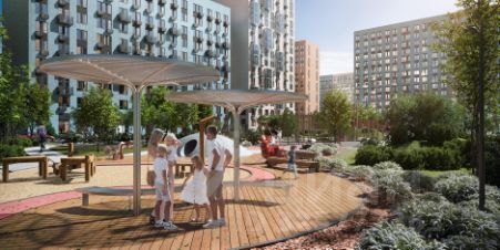 Дворы — приватные мини-парки без машин и посторонних. Кроме игровых площадок, для детей обустроили тематический плейхаб "Маяк". В будущем появятся плейхаб "Алиса в стране чудес", арт-объект "Тропа зеркал", а также большой ландшафтный парк.
