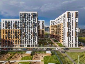 В квартале — монолитные дома комфортной высоты, от 10 этажей. Светлые фасады украшают кирпичные вставки в теплых природных оттенках.