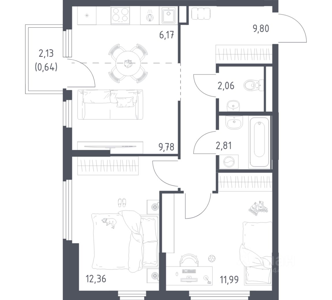 Строим кварталы для жизни с заботой о будущем. Предлагается 2-комнатная квартира комфорт-класса площадью 55,61 кв.м в корпусе 20 на 7-м этаже, в жилом комплексе "Остафьево".