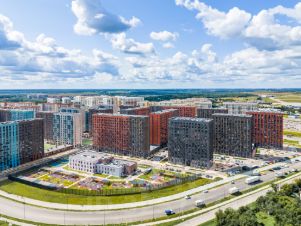 Часть домов уже сдана, на территории открыты две школы и три детских сада, а в будущем будет построена поликлиника, ТЦ, еще одна школа и три детских сада.