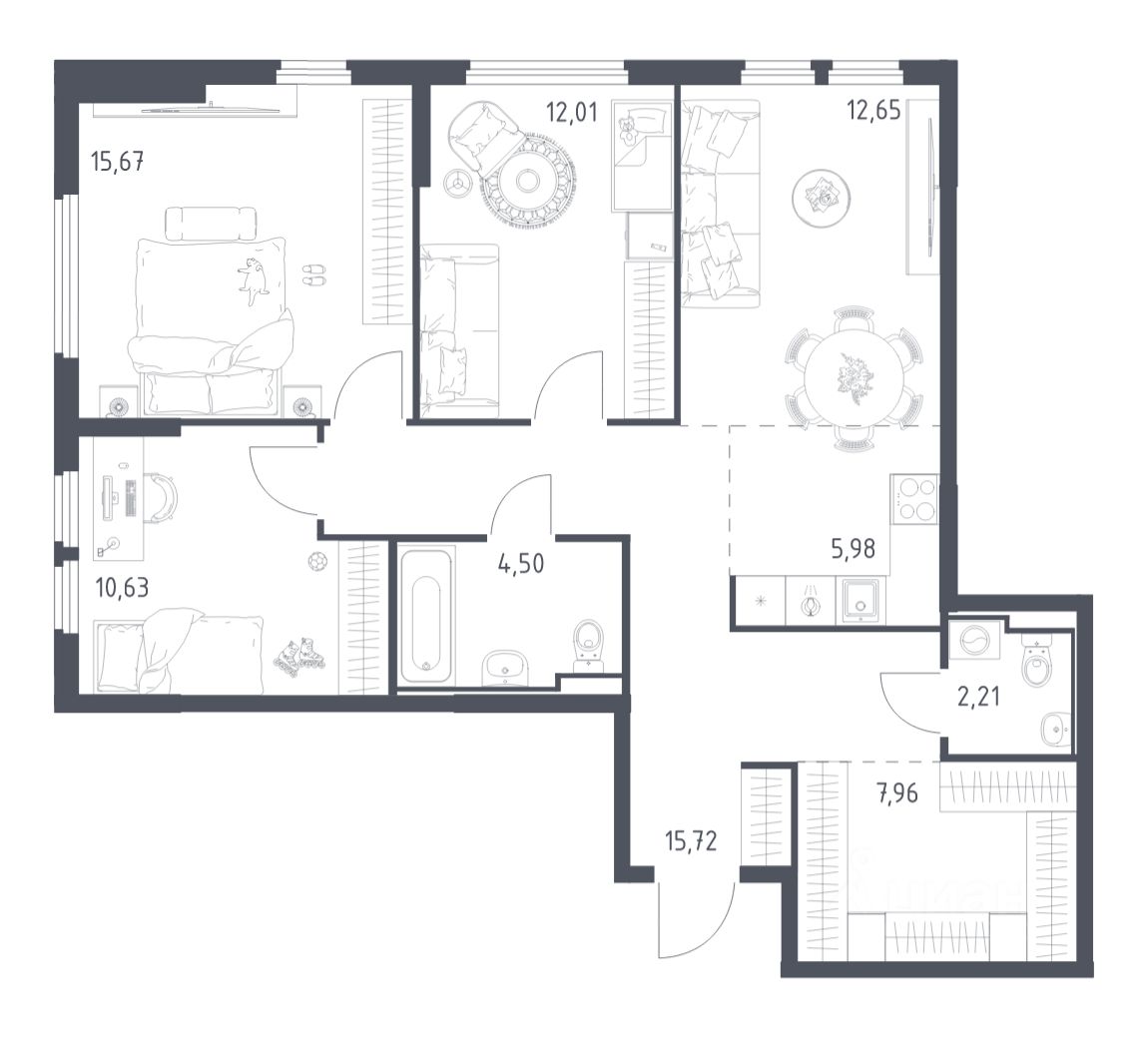 А если не хочется тратить время на ремонт, можно выбрать опцию — с отделкой. Перед тем как отдать ключи, застройщик установит натяжные потолки, поклеит обои под покраску, положит ламинат светлых тонов, а в санузлах — керамическую плитку и керамогранит.