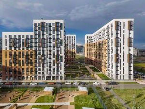 В квартале — монолитные дома комфортной высоты, от 10 этажей. Светлые фасады украшают кирпичные вставки в теплых природных оттенках.
