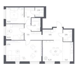 Строим кварталы для жизни с заботой о будущем. Предлагается 3-комнатная квартира комфорт-класса площадью 102,47 кв.м в корпусе 34 на 1-м этаже, в жилом комплексе "Новое Внуково".