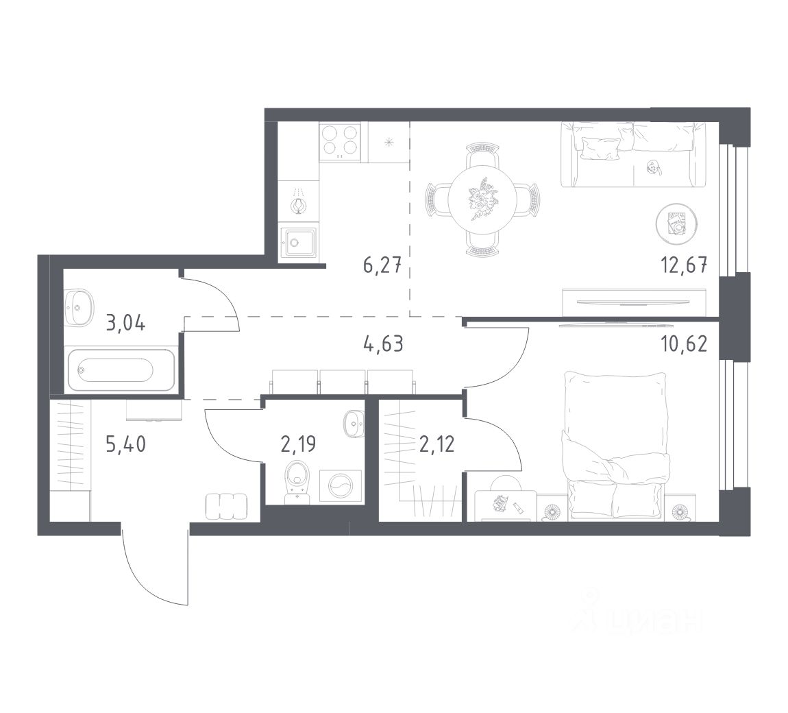 Строим кварталы для жизни с заботой о будущем. Предлагается 1-комнатная квартира комфорт-класса площадью 46,94 кв.м в корпусе 34 на 5-м этаже, в жилом комплексе "Новое Внуково".
