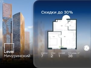 В жилом квартале, расположенном на границе с природным заказником "Долина реки Очаковки", продаётся 1-комнатная квартира площадью 38.00 кв.м без отделки. Квартира расположена на 2 этаже 24-этажного корпуса 7 в жилом комплексе бизнес-класса Level Мичуринский (компания Level Group/Левел групп).
