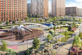 Дворы-парки закрыты от машин и посторонних. На территории — прогулочный маршрут вдоль реки Незнайка и набережная с шезлонгами и качелями для отдыха. Также здесь появится плейхаб "Незнайка на Луне", площадь для мероприятий с сухим фонтаном, летним кинотеатром и кафе.