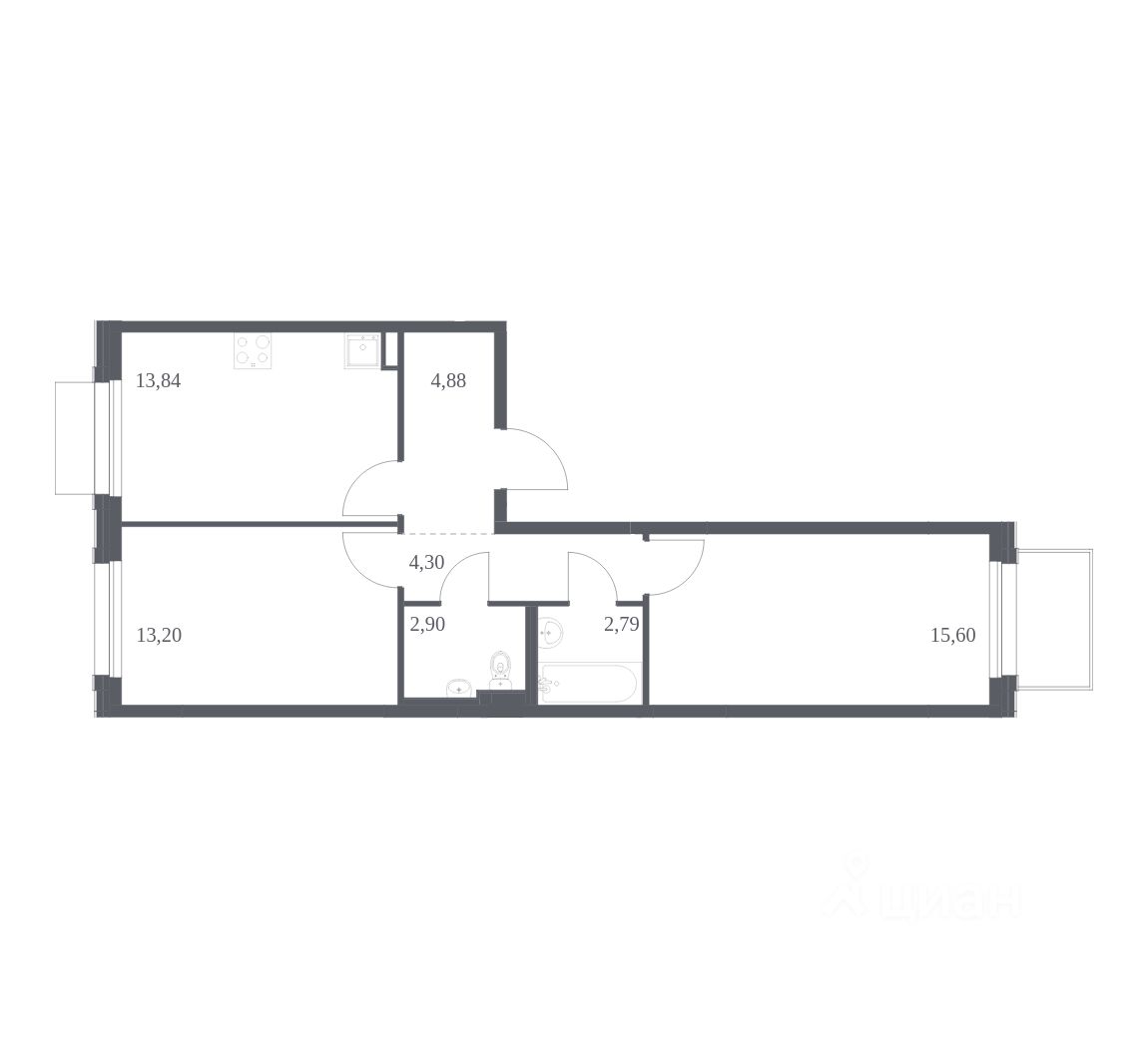 Строим кварталы для жизни с заботой о будущем. Предлагается 2-комнатная квартира комфорт-класса площадью 57,51 кв.м в корпусе 31 на 9-м этаже, в жилом комплексе "Новое Внуково".