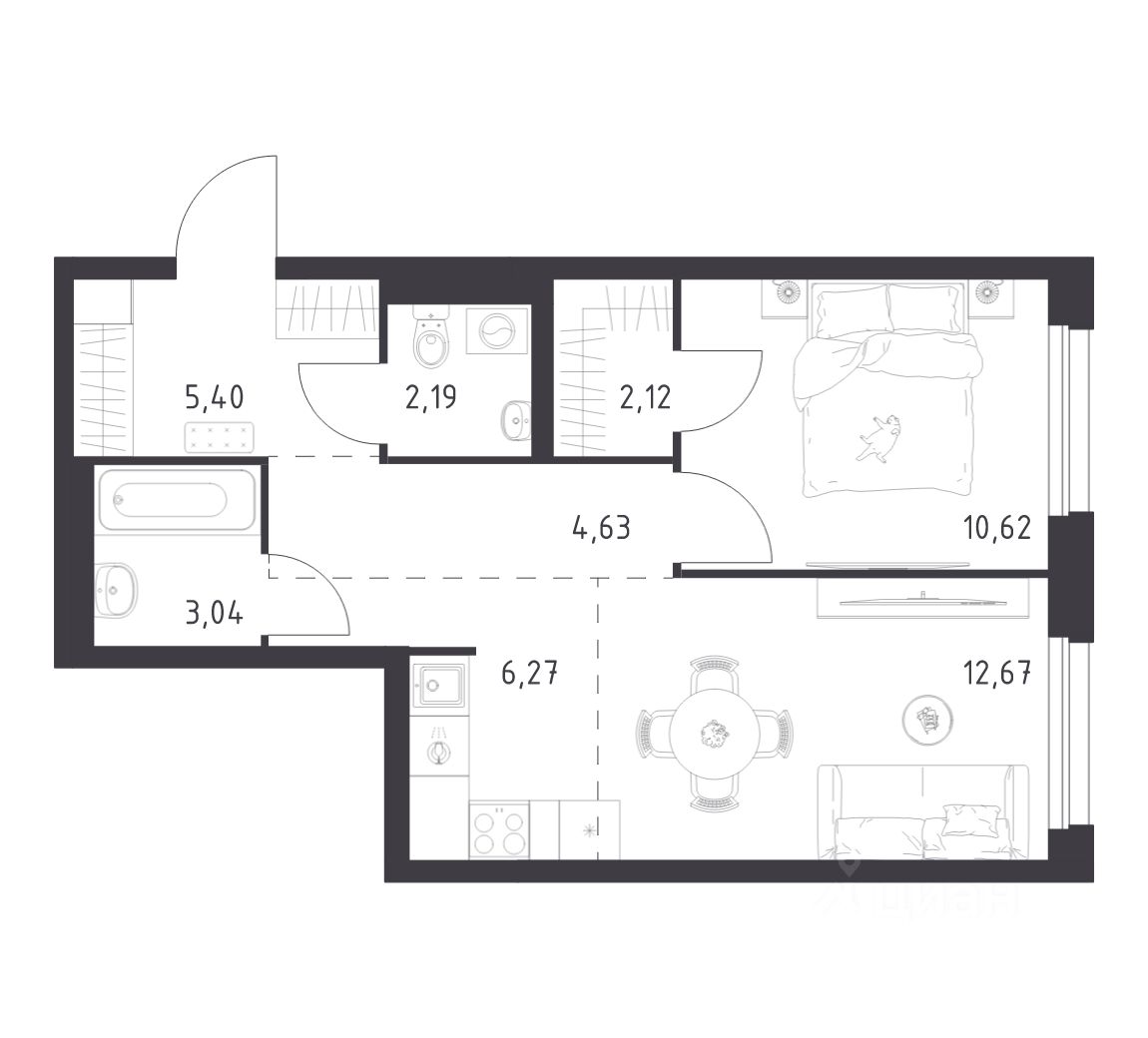 Строим кварталы для жизни с заботой о будущем. Предлагается 1-комнатная квартира комфорт-класса площадью 46,94 кв.м в корпусе 35 на 4-м этаже, в жилом комплексе "Новое Внуково".