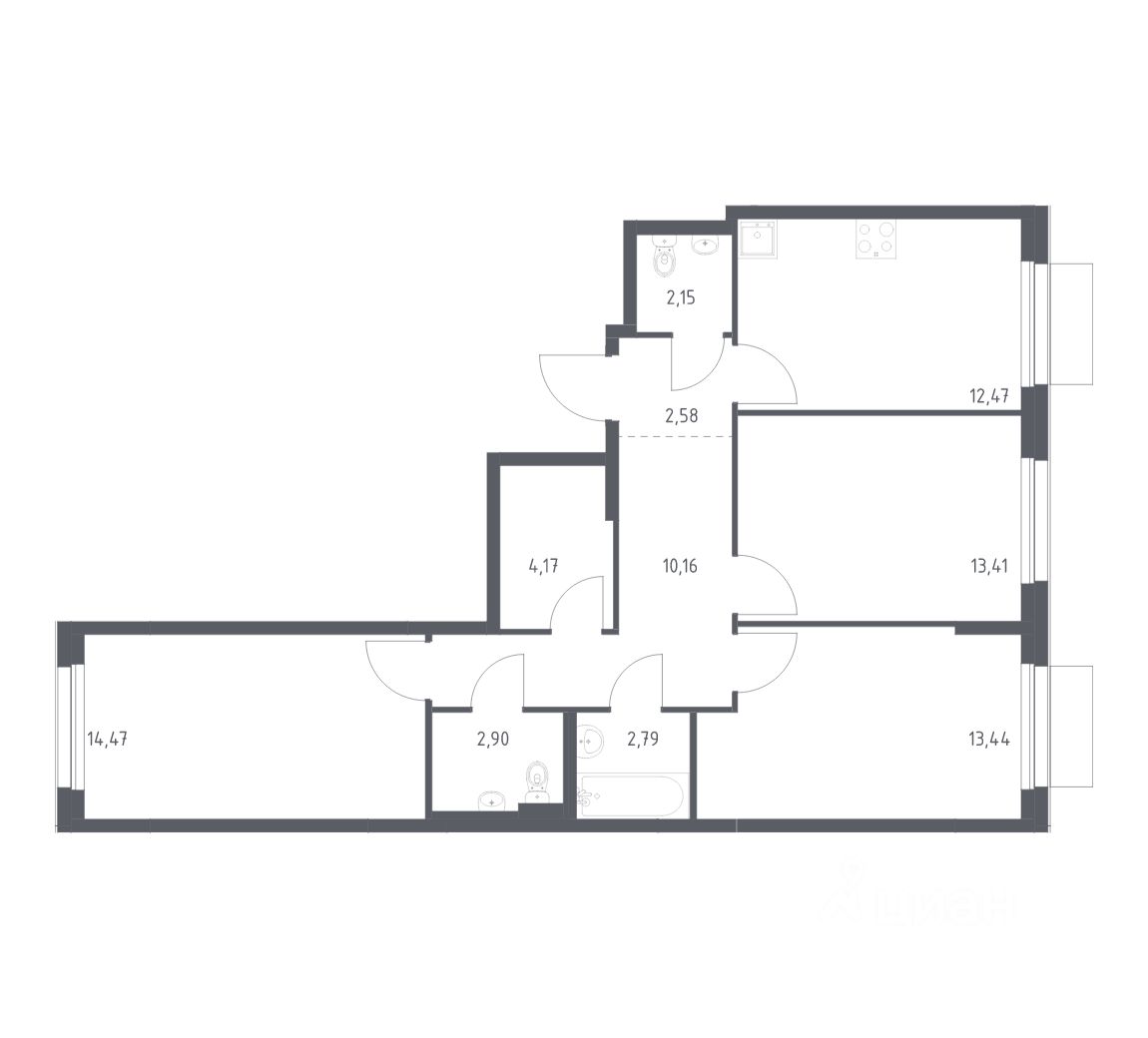 Строим кварталы для жизни с заботой о будущем. Предлагается 3-комнатная квартира комфорт-класса площадью 78,54 кв.м в корпусе 32 на 5-м этаже, в жилом комплексе "Новое Внуково".