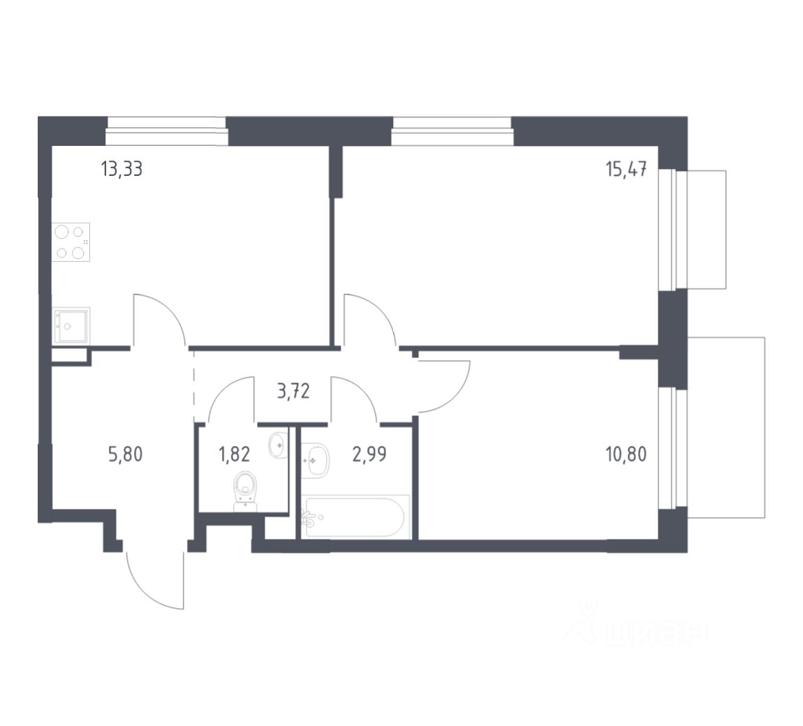 Строим кварталы для жизни с заботой о будущем. Предлагается 2-комнатная квартира комфорт-класса площадью 53,93 кв.м в корпусе 30 на 7-м этаже, в жилом комплексе "Новое Внуково".